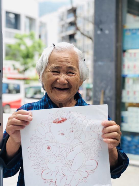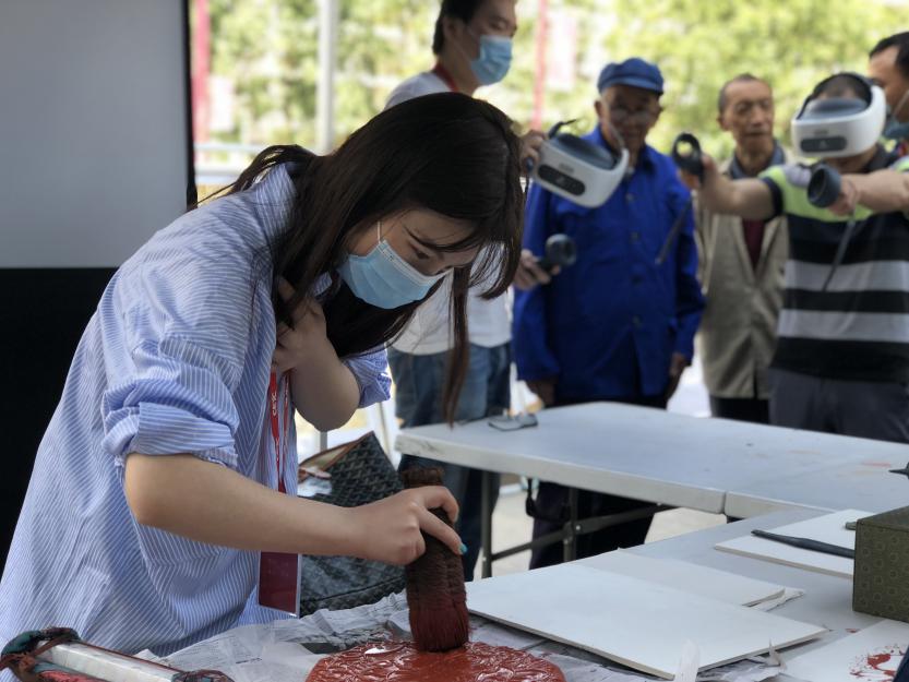 (志愿服務(wù)人員為群眾演示年畫拓印制作)