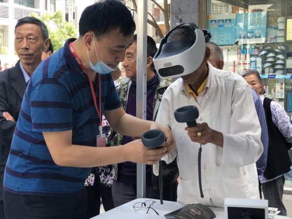 (志愿服務(wù)人員為群眾帶來白鶴梁水下遺址博物館VR體驗)